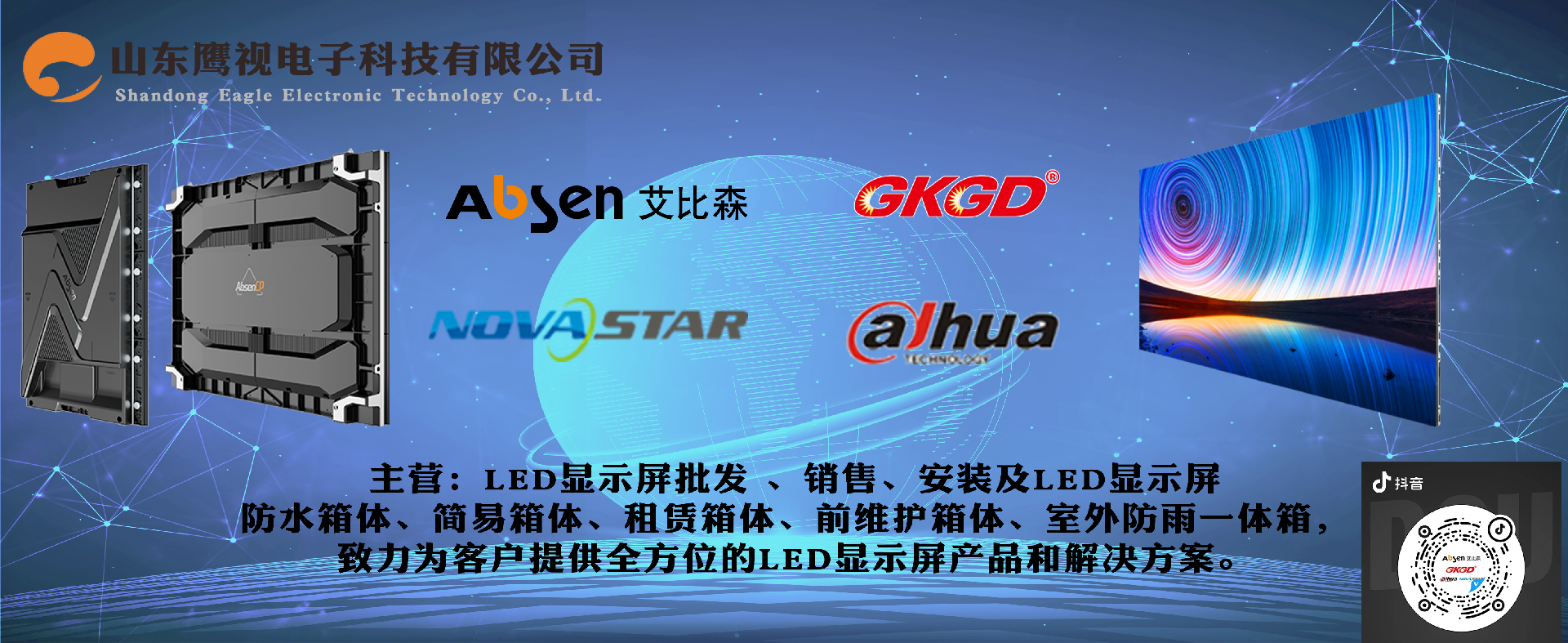 山東鷹視電子科技有限公司成立于2006年,是一家私營獨(dú)資企業(yè),注冊資本1000萬,代理品牌:艾比森、高科、諾瓦星云和大華,公司設(shè)立臨沂總部、濟(jì)南分公司、河北分公司和箱體生產(chǎn)廠。公司總部坐落在江北最大物流城,又是中國第二大批發(fā)市場山東臨沂,其地理位置優(yōu)越,交通便利,公司建筑面積5000多平方,員工80余人,擁有完善的售前,售后服務(wù)體系,公司業(yè)務(wù)遍及山東省內(nèi)各地級市。自有箱體生產(chǎn)廠,專業(yè)從事顯示屏箱體生產(chǎn),自產(chǎn)自銷,規(guī)格齊全,包括LED顯示屏防水箱體、簡易箱體、租賃箱體、前維護(hù)箱體、室外防雨一體箱,生產(chǎn)設(shè)計(jì)免焊易結(jié)構(gòu),使安裝更簡潔高效,致力為客戶提供全方位的LED顯示屏產(chǎn)品和解決方案。鷹視人員堅(jiān)守“誠信 感恩 負(fù)責(zé)任”的核心價(jià)值觀,秉承“謙卑 忠誠 協(xié)作 擔(dān)當(dāng) 積極主動(dòng) 堅(jiān)韌不拔”的企業(yè)精神,始終以精誠團(tuán)結(jié)、追求卓越、為客戶提供優(yōu)質(zhì)產(chǎn)品和專業(yè)服務(wù)。 .